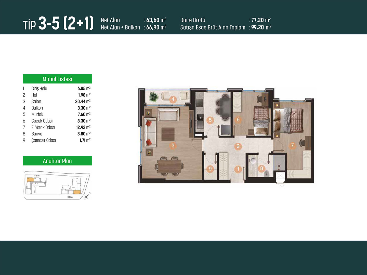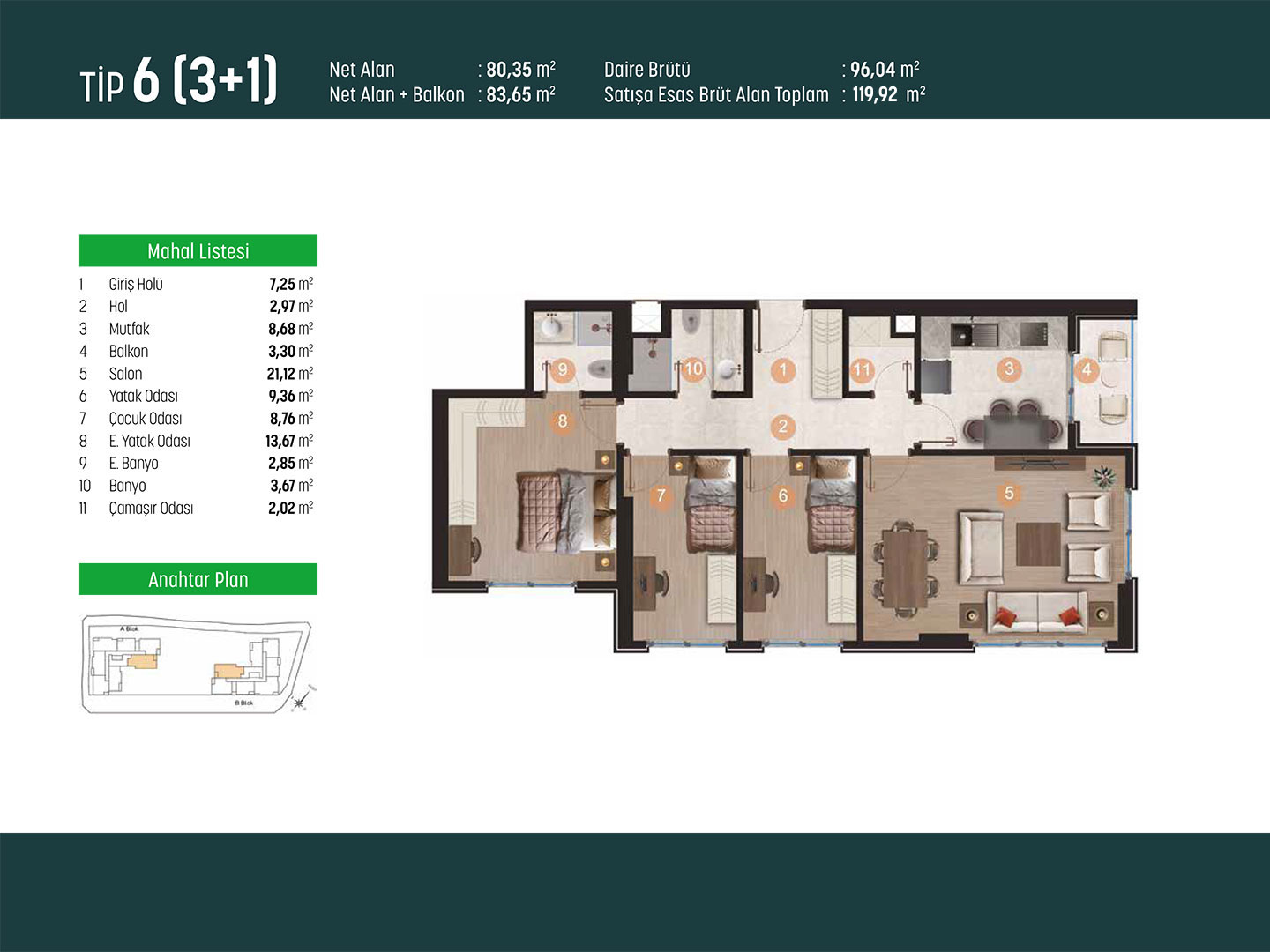 Bu nedenle tüm odalarınız, hayalinizdeki yuvayı gerçekleştirmenize imkan tanıyan mimari özelliklere göre tasarlandı.