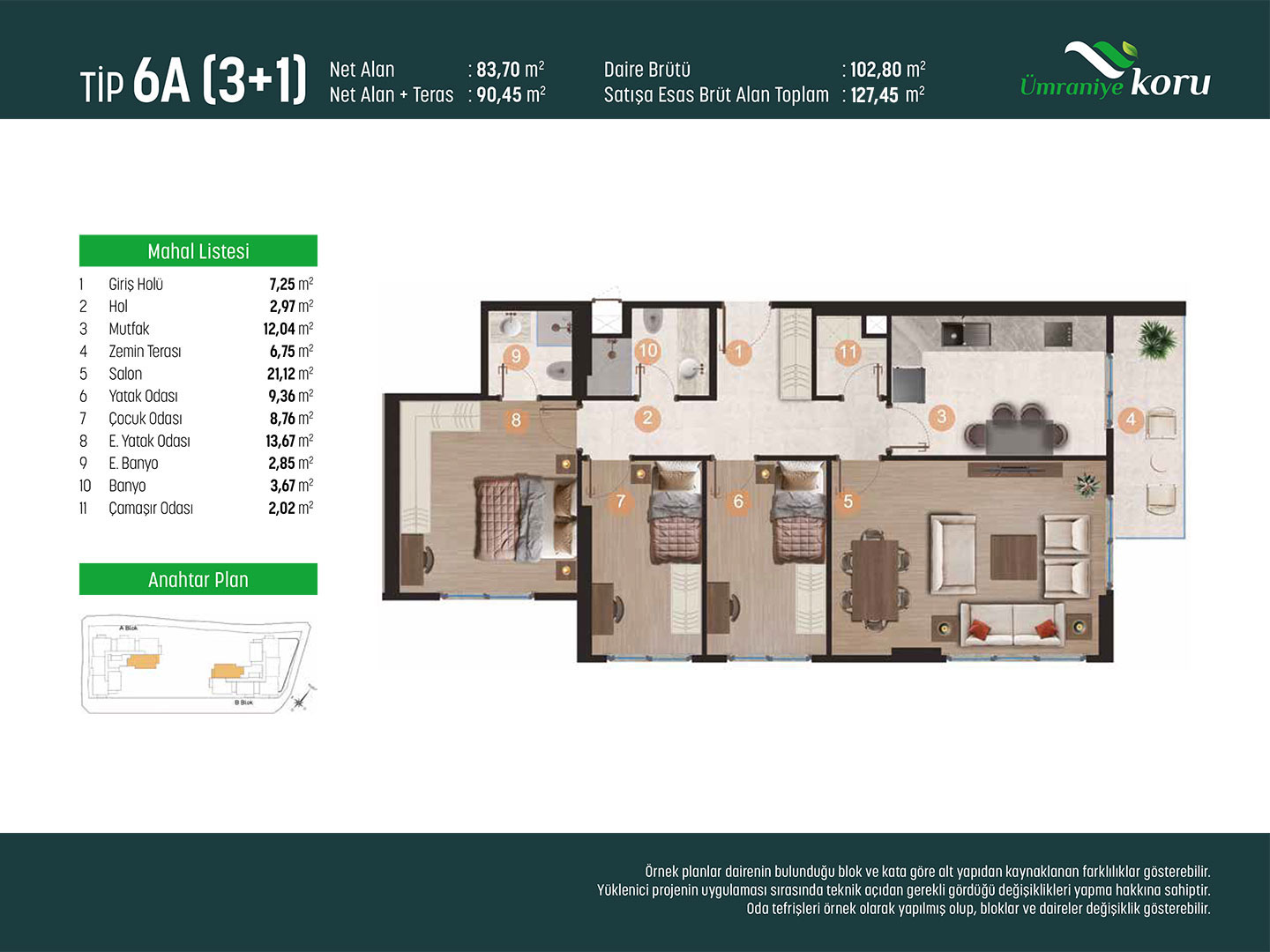 Farklı tiplerde 2+1 ve 3+1 dairelerden oluşan Ümraniye Koru’daki evinizde yaşamak, size hem konfor hem kalite hem de güvenli bir hayat sunacak.